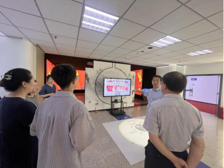 在讲解的带领下,党员们先后参观了大国重器(中国制造业成就)、逐梦苍穹(航空航天成就)、民生发展(在发展中保障和改善民生,鼓励共同奋斗创造美好生活,不断实现人民对美好生活的向往)、大国奇迹(“实现了小康这个中华民族的千年梦想,打赢了人类历史上规模最大的脱贫攻坚战”)、丝绸之路、维护和平等主题展屏。在“驶向深蓝”的主题展屏前,党员们了解了新时代舰船制造与海军海警建设事业的突飞猛进,坚定了建设海洋强国的信心。讲解员还介绍了西北大学地理系郑资约教授在1945年用“十一段国界线”圈定了中国南海海域范围、宣示中国政府对南海诸岛主权的历史性贡献。通过以上参观,党员们进一步坚定了党领导国家实现伟大民族复兴的政治自信,认识到“民族复兴,关键在党”所赋予我们每一名党员的责任与使命。