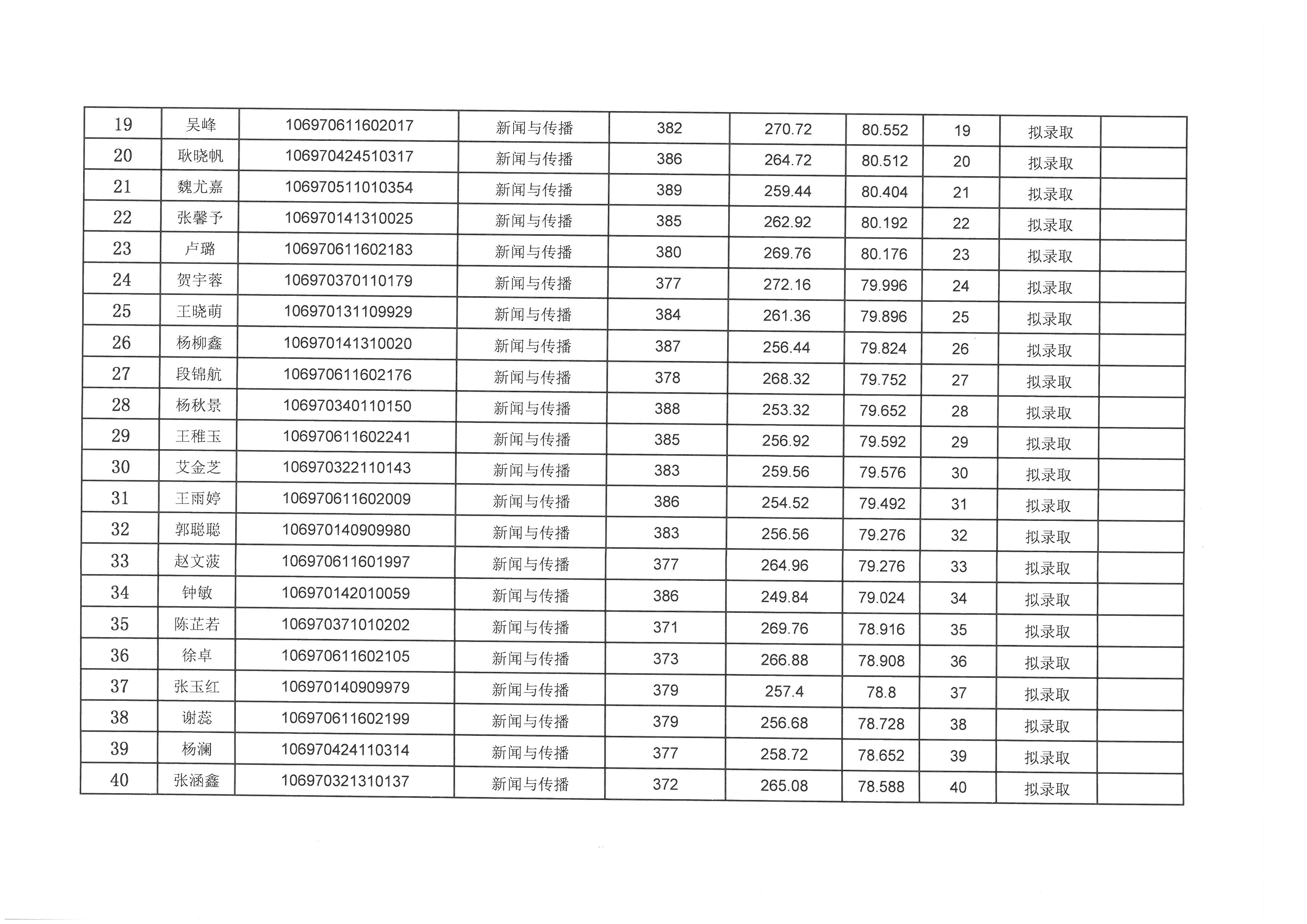 2020年西北大学新闻传播学院硕士研究生一志愿复试结果公示
