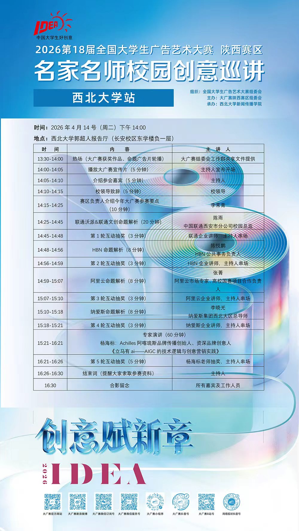 第18届全国大学生广告艺术大赛(陕西赛区)名家名师校园创意巡讲通知