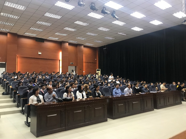 在发言的最后环节,学院党委副书记梁婕老师邀请与同学们生活上最亲近的辅导员老师发言。赵钧陶老师回忆起与同学们初见的时光,感慨不已,并送出最诚挚的祝福。邹阳笛老师说道,2015级是他所带的第一届学生,有着特殊的意义和深厚的感情。发言情到深处,邹阳笛老师几度哽咽,在场的许多学生一起红了眼眶。