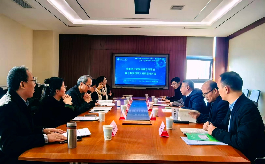 12月14日14:30至17:00,智能时代新闻传播学科建设暨《新闻知识》发展圆桌对话在长安校区东学楼0909会议室召开。本次对话聚焦学术期刊高质量发展与新闻传播学科建设创新,汇聚学界业界权威力量,展开了深度研讨。